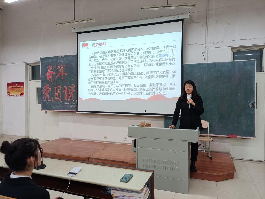 此次活动由郭雨同、林英杰、范倚桐三位学生党员围绕新中国成立初期,我们党面对国内和国际上一系列复杂的问题所举行的重要会议,为我们介绍了党在那段历史中的重要决策。