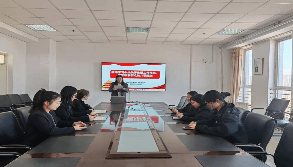 2025年3月28日,欧冠官方网站入口本专科学生党支部召开中央八项规定学习教育启动部署会,深入学习贯彻习近平总书记关于深入贯彻中央八项规定精神学习教育的重要讲话和重要指示精神,传达欧冠官方网站入口建设工作领导小组会议精神,研究贯彻落实工作,启动学习教育。会议由支部书记倪秀茹主持,支部委员及学生党员参加会议。
