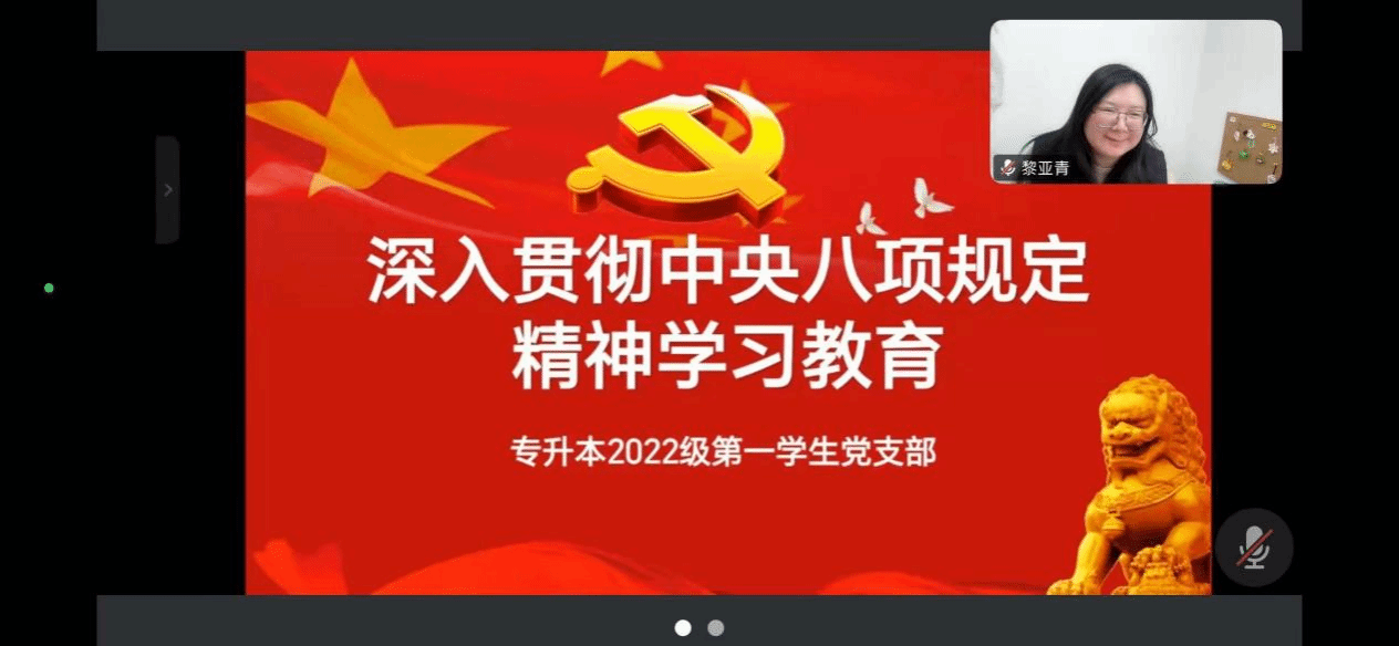 为深入贯彻落实党的二十大精神,持续深化作风建设,欧冠官方网站入口专升本2022级第一学生党支部于3月28日组织全体党员开展深入贯彻中央八项规定精神学习教育活动。
