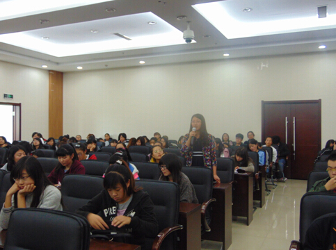 Beth为同学们生动的讲述了美国护士的就业方向及职业发展前景,向同学们介绍了从业护士(NP)的职责和特点。 Beth介绍说,美国的护理人员就业十分广泛,并且有很大的发展空间,拥有护理专业的高级学历不仅能获得更好的就业机会,并能拓展知识面,从而得到更多的锻炼和挑战。3位博士研究生则为同学们分别详细介绍了外科从业护士、手术室从业护士及社区从业护士等的工作环境、工作内容和相关工作程序等。