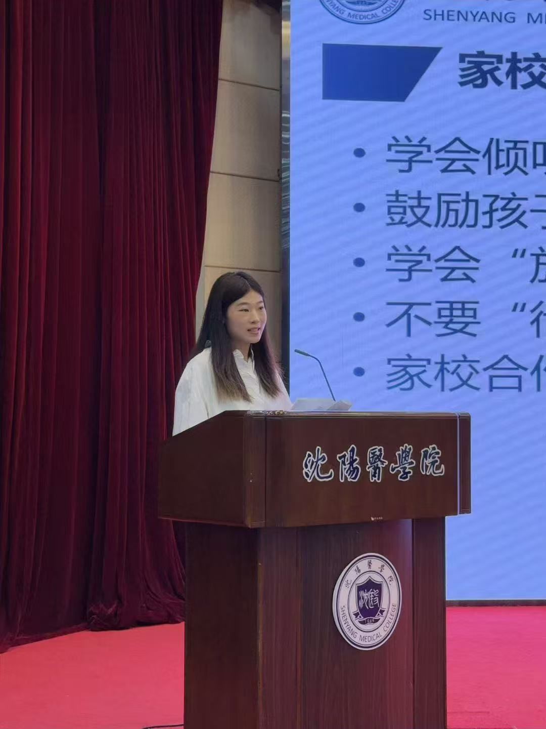 随后,新生辅导员代表刘圆舒晴老师以“从‘家’到‘校’的温暖接力”为主题发言。她结合自身带班经验,分享了新生适应期的常见挑战与应对策略,如独立生活能力提升、学习方法转型、人际关系处理等。同时,向家长传递关注学生心理健康的重要性,要求家长要积极关注孩子心理健康,主动与孩子沟通交流,及时察觉学生心理问题。