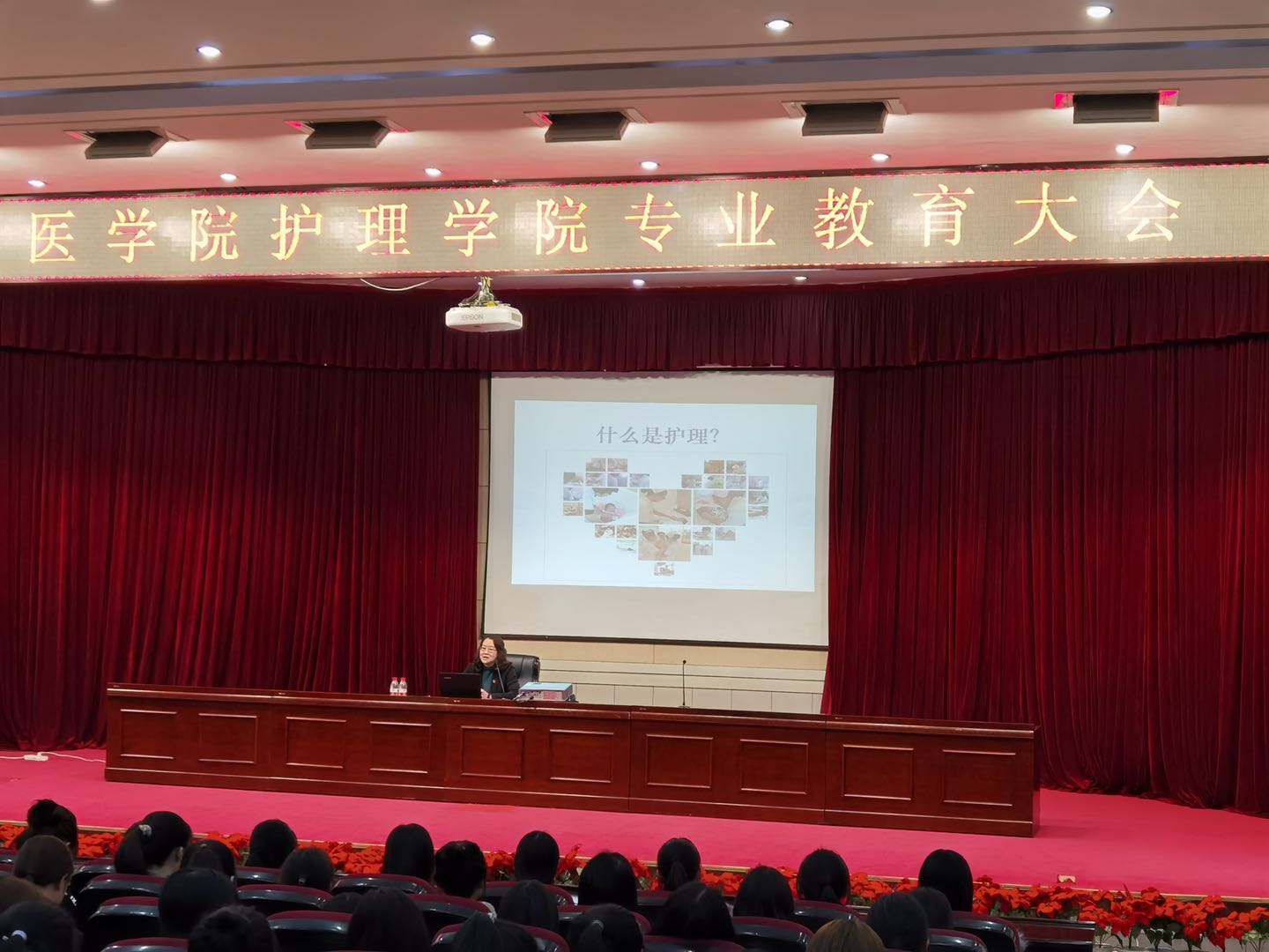 为使2020级新生尽快明确学习目的,增强学习动力,科学规划专业学习生活,及时完成角色转变,10月29日下午5点欧冠官方网站入口在图书馆六楼学术报告厅举行了2020级新生专业介绍教育大会。欧冠官方网站入口院长郭宏、党总支书记叶琳、学生科科长张蕊、全体新生辅导员及400余名护理专业新生参加了本次大会。会议由当党总支叶琳书记主持。