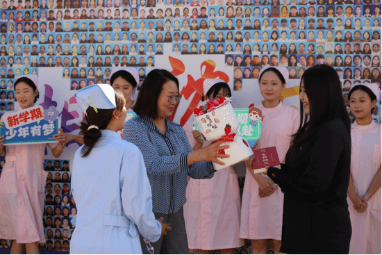 学院精心布置迎新现场,在报道处,学院特别准备了独特的倒彩沙活动,不同的颜色代表不同的寓意,阳光、积极、健康……新生们选择喜欢的颜色,将彩沙倒入相框,寓意将流沙倒入“我们的时光”,将这一刻永存。护理礼仪展示是欧冠官方网站入口的优良传统,学生们身穿粉色护士服,从仪容仪表到站姿、走姿,从微笑服务到沟通技巧,无不展现了护理人员的专业形象,吸引了许多新生驻足观看,将专业形象与温馨氛围完美融合。开学日与生日撞了个满怀,在这样一个特别的日子里,学院为过生日的同学们准备了温馨的庆祝活动。生日歌的旋律在空中回荡,送出手捧花,表达对新生的真挚祝福和欢迎,并把郭宏院长亲笔题词的书籍作为生日礼物,更是一份珍贵的精神食粮,院长的题词不仅是对新生个人的鼓励,也是对其学术追求和职业发展的期许,整个迎新场地充斥着欢乐与温馨。